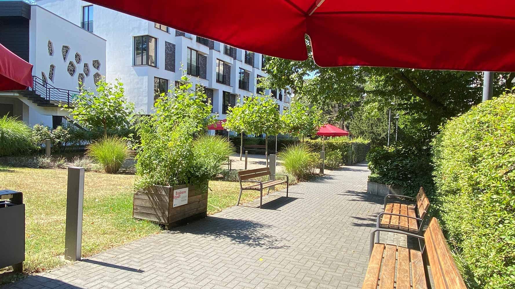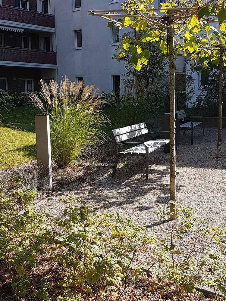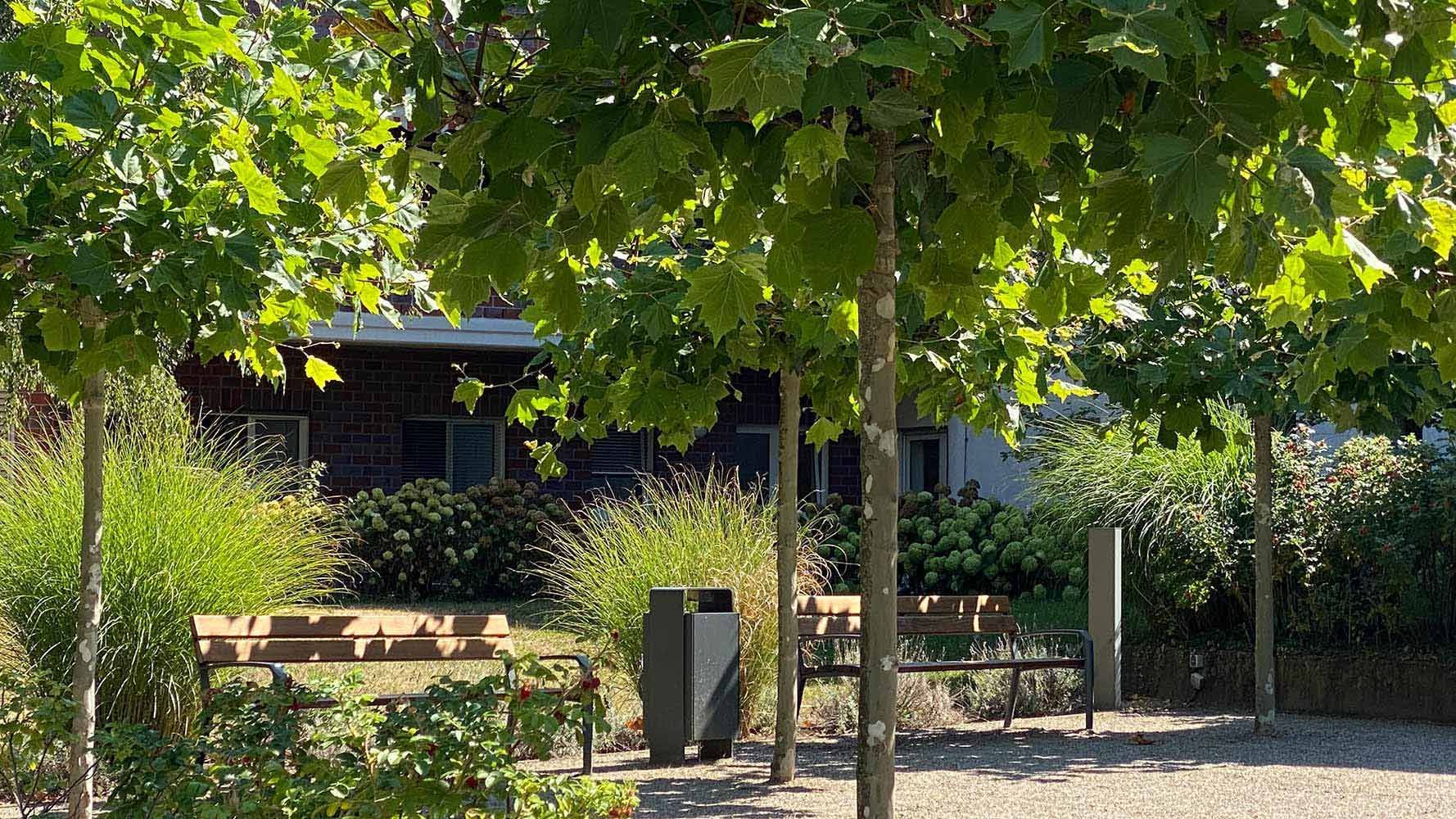 Umbau eines Wohnheimes mit einem von uns geplantem Demenzgarten als fester Bestandteil des Stifts der zum täglichen Verweilen einlädt.