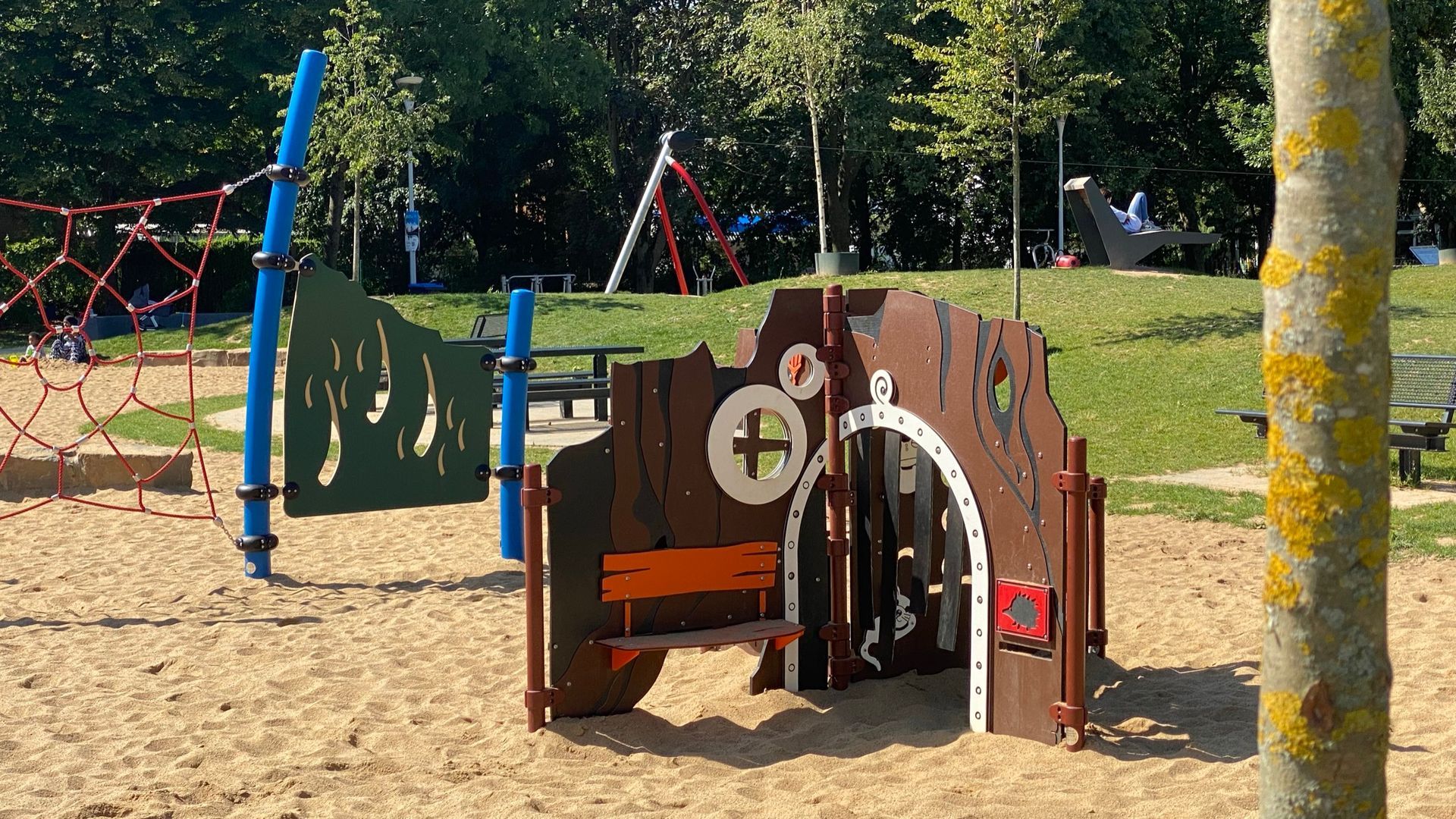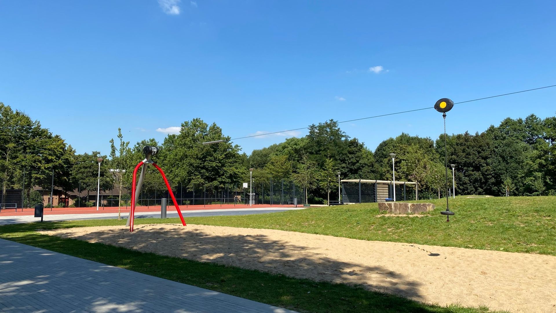 - Spiellandschaft mit Seilbahn, Seilspinne, Kletternetz, besonderer Kletterwürfel, Boule-Bahn,